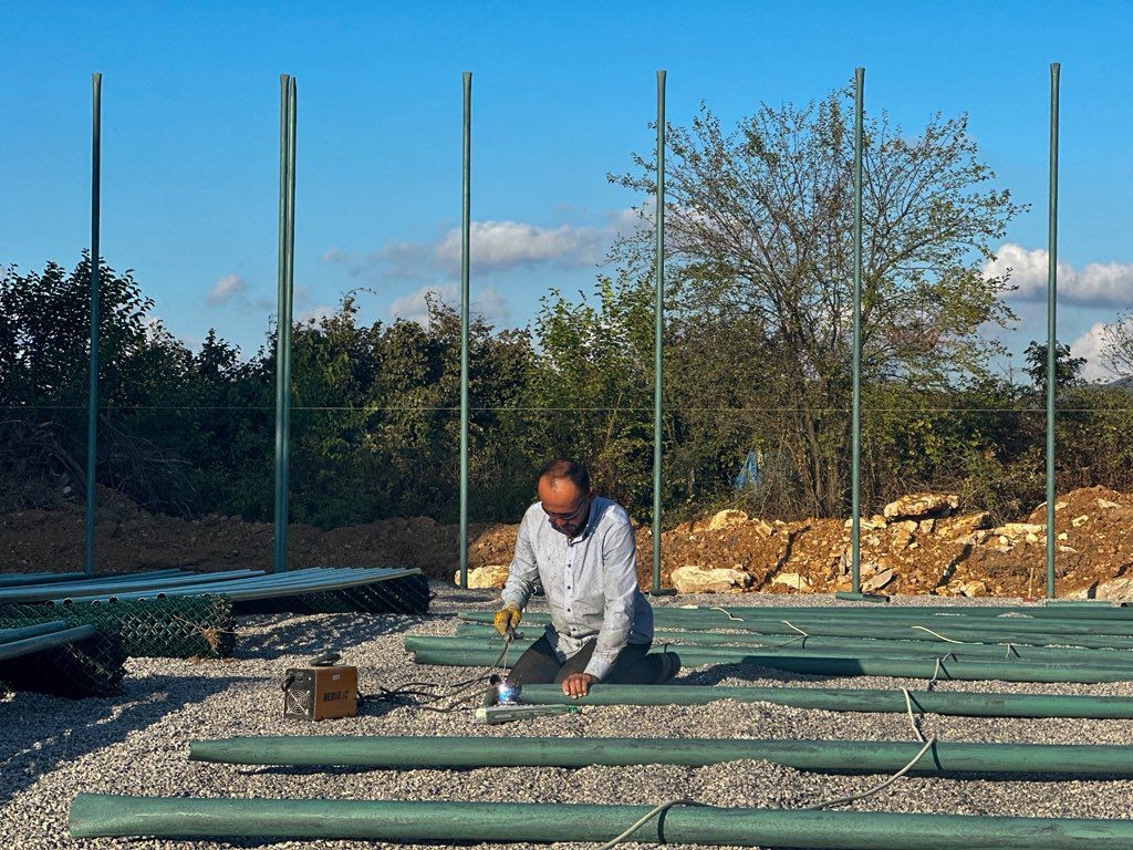 Karateke Mahallesi’nde yapımına başlanan sentetik futbol sahasında saha içi direk montaj çalışmaları sürdürülmektedir. Kısa süre içerisinde halı serimi işlemleri tamamlanarak saha, gençlerin ve çocukların kullanımına sunulacaktır.